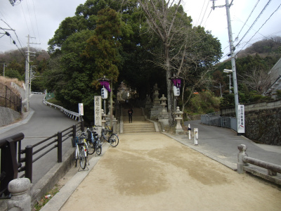どこへ行くか悩んだ挙句、結局足を運んだのは八尾市にある恩智神社。 選んだ理由は、と言うと「干支が兎だから、兎に縁のある神社」という、ただそれだけ。 ともあれ、妻と子二人を車に載せて出発。 黒猫の住む大阪市内から30~40分で目的の恩智神社に到着。 道中、下の子が寝てしまったので、妻と一緒に車に残し、上の子と二人で参拝する事としました。 この様に参道が続きます。 なんでも131段あるとか。 神社へいたる道も道幅が狭く、対向車があると少々苦労します。 まずは手水を 早速、兎です。 拝殿 兎年なのであちらこちらに兎が 拝殿の左右に神龍と神兎が。 撫でるとご利益が有るとの事で、娘と一緒に早速ナデナデ 本殿 ここにも兎 八大龍王も祀ってありました。 閼伽井戸 (清明水) この井戸はは古くより天候を予知する清水として知られ、雨の降る前になると赤茶の濁水が流れ出るという不思議な井戸だとか。 この日の水は澄んでいました。 境内から平野部を望めます 屯宮 この公園のあたりは天王の森と呼ばれ恩智神社のお旅所だったとの事です この森を中心として東高野街道から恩智川に至る付近一帯は府下でも有名な弥生時代の遺跡で大阪府の立てた碑があり、近年縄文式土器も出土しています。 何故この神社に兎が祀られているのかというと、何でもこの神社の使いとして道案内をした所以との事。 そもそもこの神社は神功皇后が三韓征伐の際、住吉大神と共に海路、陸路を安全に道案内し、先鋒或は後衛となり神功皇后に加勢したその功により、神社創建時に朝廷から七郷を賜ったことが由緒だとか。 以来、河内国二宮として参拝客も絶えない神社だとききます。 初詣、ということで考えるなら枚岡神社へ行ってからの方が良かったかな? 最もそれをいうのであれば、黒猫の住んでいる摂津国の一宮である住吉大社か坐摩神社の方がより適切といういう気がしないでも有りません。 今回の目的は、「兎」なので良しとしましょう。 今年も良い年でありますように。 恩智神社 場所:大阪府八尾市恩智中町5丁目10番地