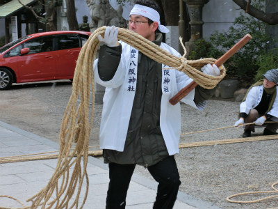大阪市という日本有数の大都市の中心部で、年頭恒例の神事として行われている行事に難波八阪神社で執り行なわれている綱引神事というものがあります。