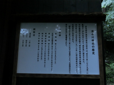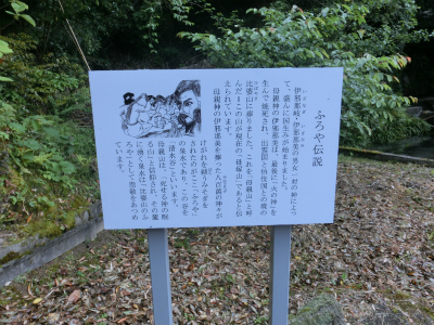 母親神の伊邪那美を葬った八百萬(やおよろず)の神々がけがれを祓うみそぎをされたのがここ「ふろや」の泉水であり、この谷を「清水谷」といいます。