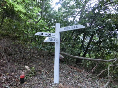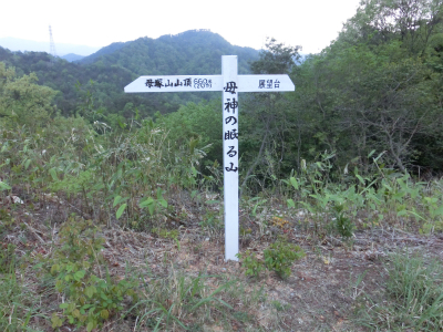 左に行くと母塚山山頂(660米)、右に行くと展望台があるようです。