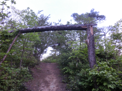 途中、鳥居のように折れてしまっている倒木を潜り抜けて展望台へ。