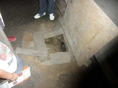 こちらが水車から送られてくる空気の地下配管。