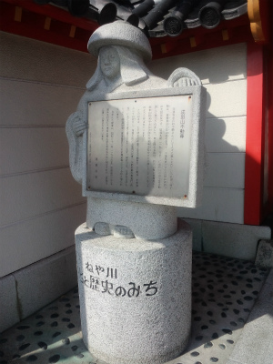 山門脇にあった寝屋川市の案内。鉢かづき姫がモチーフとなっているようで。