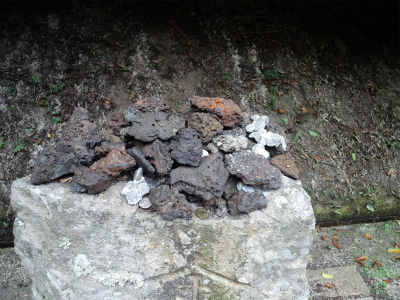 鳥居をくぐって直ぐのところに並べられているこれらの鉧(けら)は、大きさ数メートルに及ぶ物ばかりで中々壮観です。
