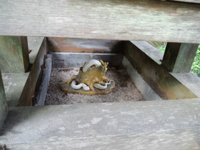 本殿へ上がる石段の脇に池があり、こちらにも何か祀られているようでした。