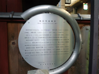 海会寺金龍井(海会寺井)の名称は、海会寺がこの甲斐町東付近にあった頃時代に掘られたこと、乾峯士曇が干ばつのときに龍神に祈ったところ、老人に化身した鬼面龍神が現れ井戸を掘る場所をおしえたという由緒があることにちなんでいます。