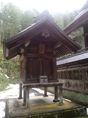 上がっていくと、本殿脇に摂社が2つ建っているのが分かります。
