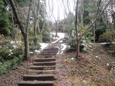 が、残念ながら周囲は木で覆われており、期待したようには黄泉比良坂を見下ろすことが出来るようにはなっていない様子。下の看板等が思わせぶりであっただけに残念。