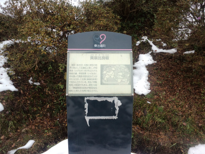 有名な「古事記」のなかで語られる説話として、死んだ妻イザナミを追ってイザナギがこの坂を通って通り、根の堅州国(ねのかたすくに)に入ったというものがあります。
