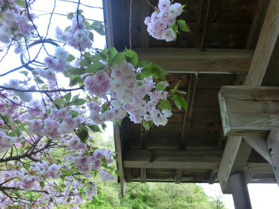 滝山公園入口にあった休憩所の傍にあった山桜が満開の状態でした。