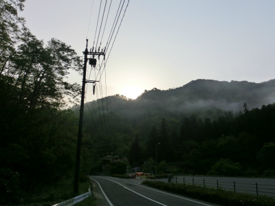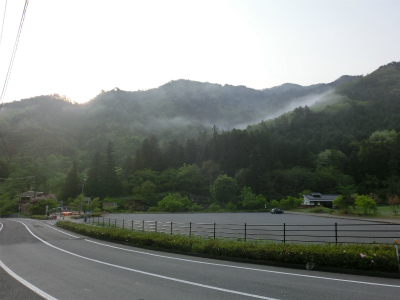山の早朝には霧が出やすいことを失念していました。しかし、それなりに視界は通っているのでこのまま向かうことにします。
