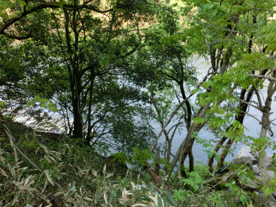 大岩の下流側は木が結構茂っていますので、道路からは視界が確保しにくかったです。