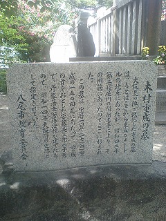 第二寝屋川の南側は、現在八尾市となっていますが、そこに木村重成が討ち死にしたと伝えられる場所があり、現在も墓が残されています。