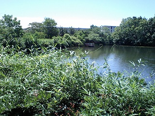こんな感じに池の周りが全てフェンスで囲われている上、さらに草が伸び放題で緑の壁となって視界を遮っています。