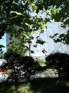 このように緑の壁が薄い箇所から覗くしかありません。