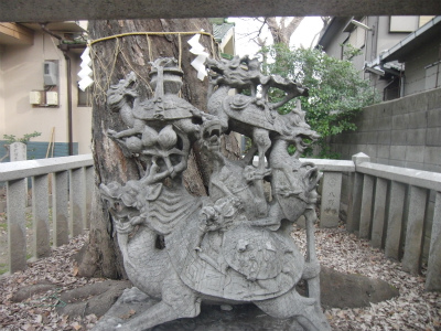 ご神木の所におかれていた石像…何でしょう?玄武?