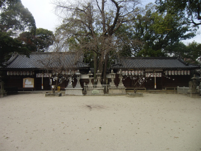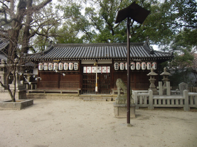 正覚寺合戦のさい畠山政長がここに布陣して敗れ、当社は焼失しり、織田信長が石山本願寺攻めにあたり、ここに本陣を設けたという話もあり、なかなか現在では小さな神社ですが歴史ある神社です。