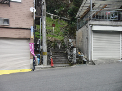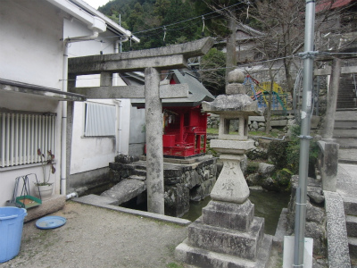もともとは滝の上の岩に祀られていたようですが、昭和40年頃の道路改良工事に際して現在の位置に遷されたようです。