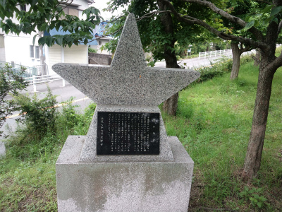 (左) 道路脇の公園に一際目を引く星型のオブジェが。