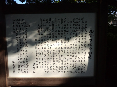 このブログでは、現地案内板の「九頭の社」で統一させていただきます。