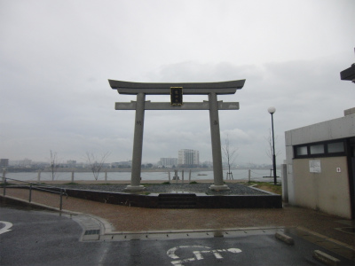 (左) 社の正面あたりにある湖畔にある鳥居。