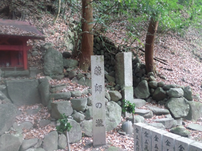 薬師の滝 薬師如来が行者の祈願を納受され出現された霊験あらたかな滝で、湧き出する滝水は病気平癒と心の悩みを治することで有名です。