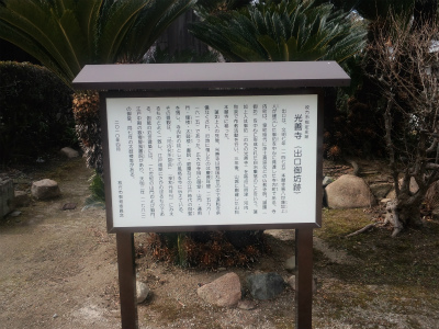 出口は、文明7年(1475)本願寺第八世蓮如上人が建立した御坊を中心に発達した寺内町である。寺内町は、室町時代に浄土真宗などの仏教寺院、道場(御坊)を中心に形成された自治集落のことをいう。蓮如上人は御坊(のちの光善寺)を拠点に摂津・河内・和泉で布教活動を行い、三年後、山城に創建した山科本願寺に移った。