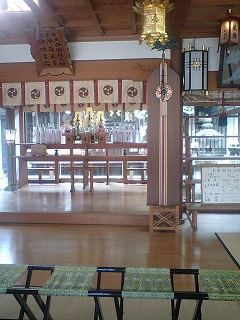 (左) 拝殿入り口から中を見てみたところ。