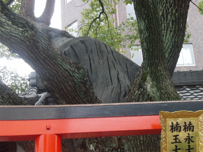 裏手に回ると、問題の楠があります。