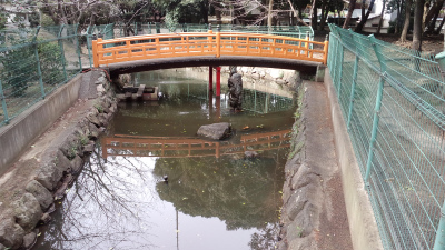 本殿の後方横側、末社弁財天、稲荷社、龍神社牛神社の前にあり、蛇渕と称せられます。この蛇渕はかっての雨乞祈願の場であり、別当久米田寺多聞院を招き、龍人豊玉姫を勧請し、読経修行するを例としたとのことであります。また、この渕には太蛇棲み久米田池へ通ったと伝えられ、今も蛇岸と呼ばれる畦畔や加守領に蛇渕掛りという田地 現在は一団の住宅地 がありました。
